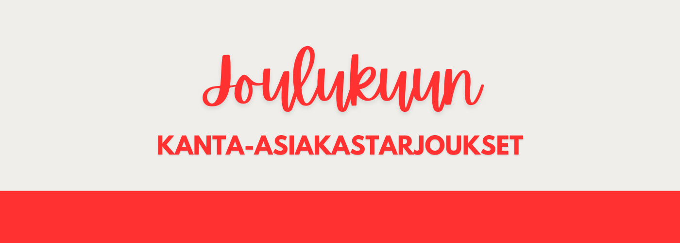 Joulukuu on täällä ja niin myös uudet ihanat kanta-asiakastarjoukset! Katso tarjokset alta ja tai shoppaa ne täältä.