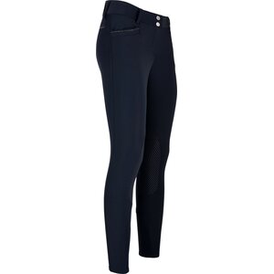 Naisten ratsastushousut polvigrip-paikoilla kauniilla pienillä yksityiskohdilla. Pienet metalliset helmet koristavat koristetaskuja takana. Edessä kaksi pientä taskua, joissa helmikoristelut. Polvigrip-paikka on hyvin pitävää ja kestävää, estämättä kuitenkaan luonnollista liikkuvutta satulassa. Normaali mitoitus ja matala vyötärö.