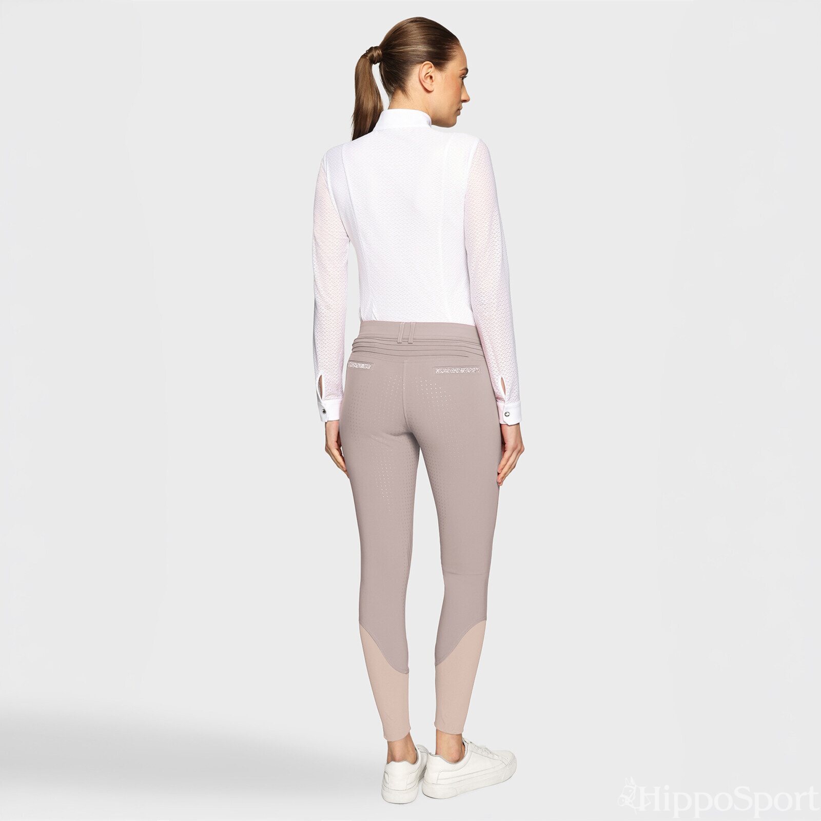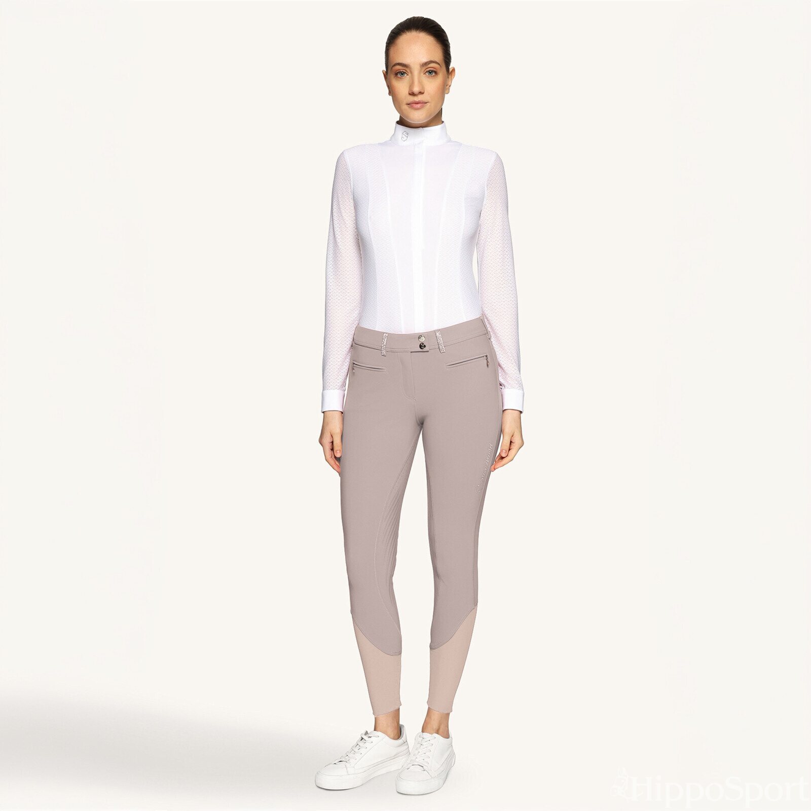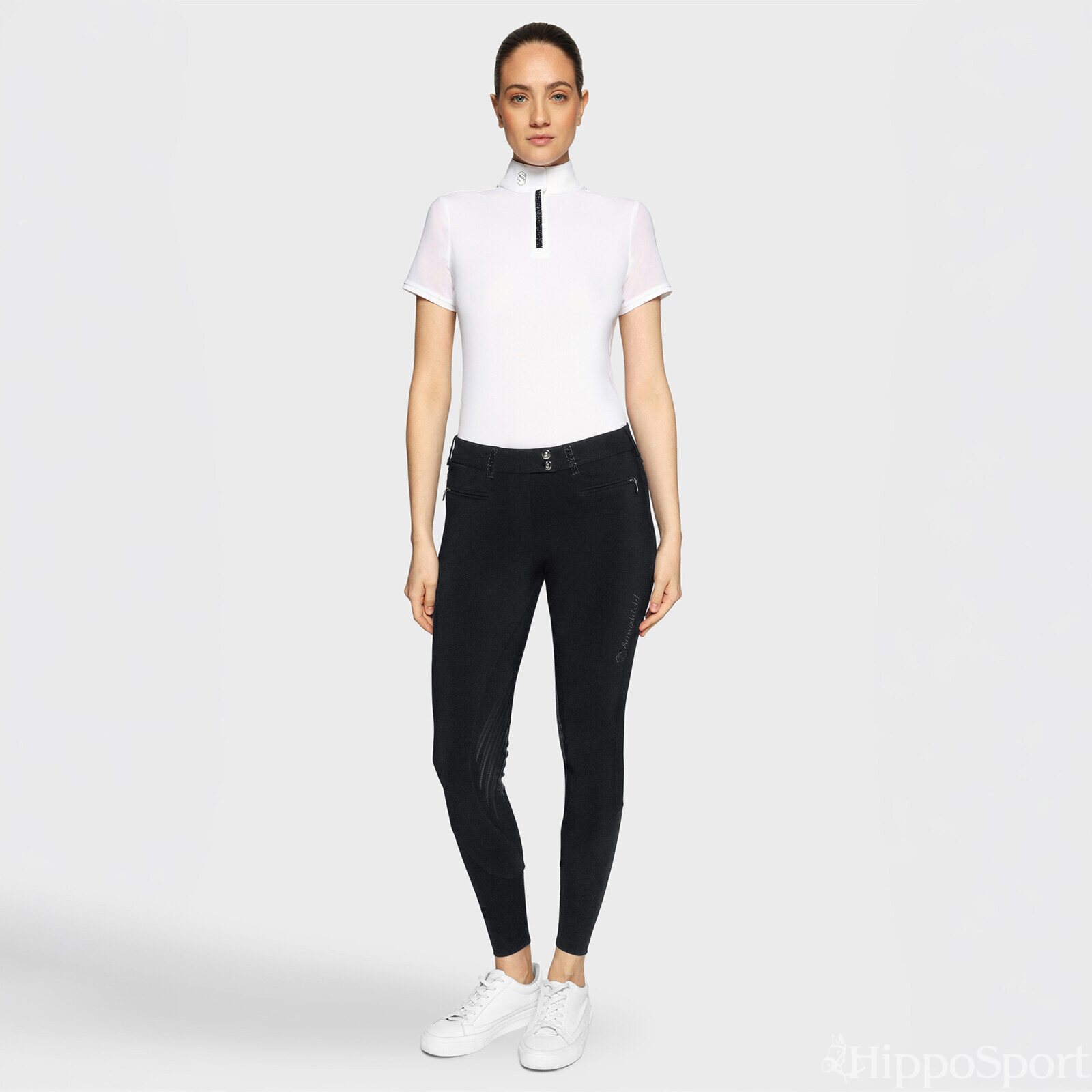Samshield Diane kokopaikkaiset ratsastushousut ovat pehmeää, teknistä materiaalia. Housut ovat joustavat, ja siirtävät kosteutta pois iholta. Takataskuissa tyylikkäät swarovski yksityiskohdat, ja reidessä Samshield logo. Kaksi vetoketjullista etutaskua.