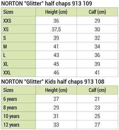 Norton Glitter minichapsit nahkajäljitelmää. Yläosassa kaunis glitterkoriste. Jousto vetoketjun vieressä auttaa muotoutumaan pohkeeseen.