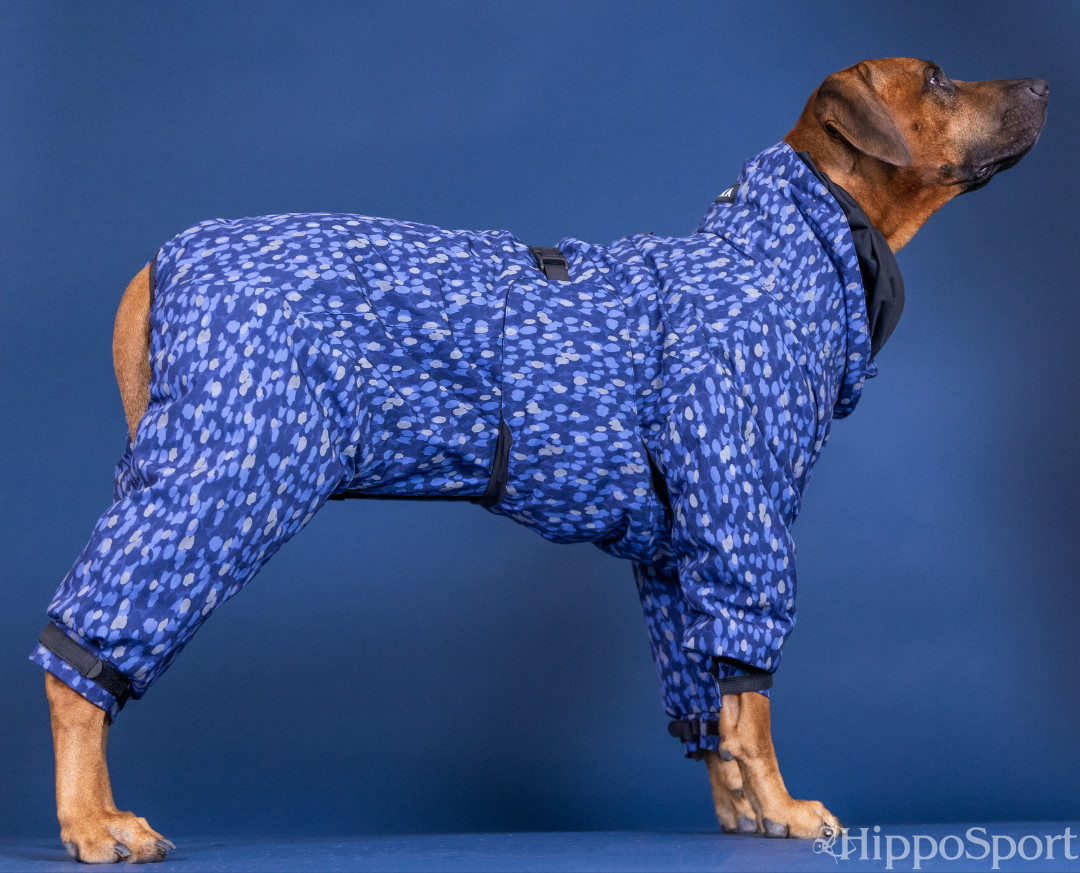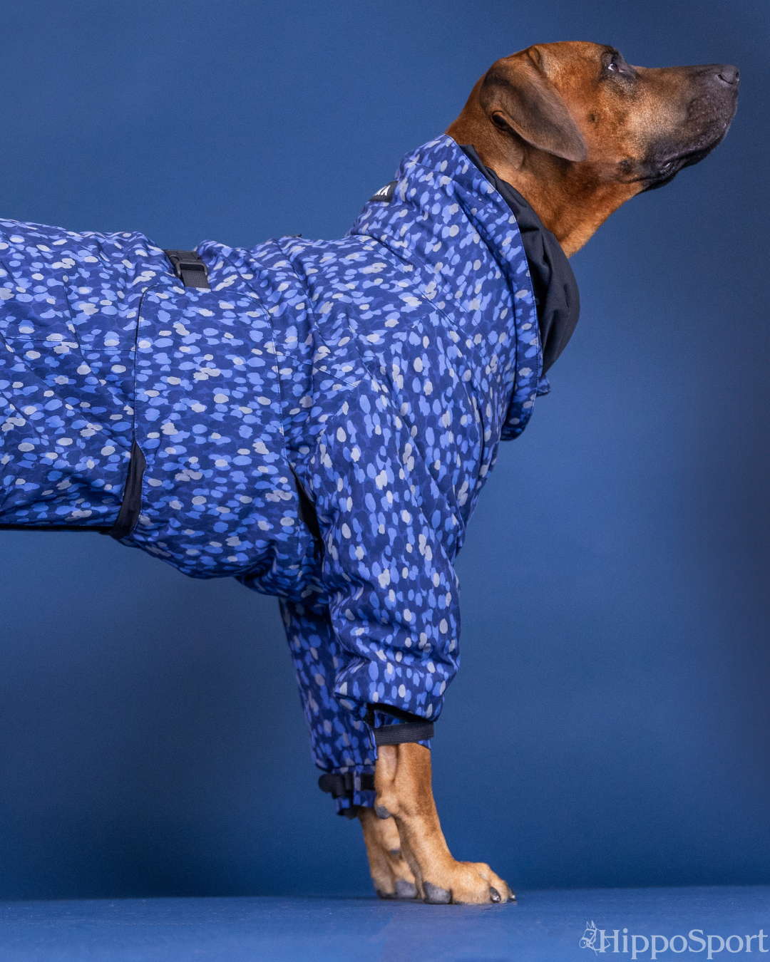 Ulkopinnan vedenpitävä materiaali ja lämmin toppaus pitävät koiran kuivana ja lämpimänä säällä kuin säällä. Pehmeä sisävuori tekee haalarista miellyttävän käyttää, ja jalkojen sileä vuori estää karvojen tarttumisen – koira liikkuu vapaasti ilman hankausta.