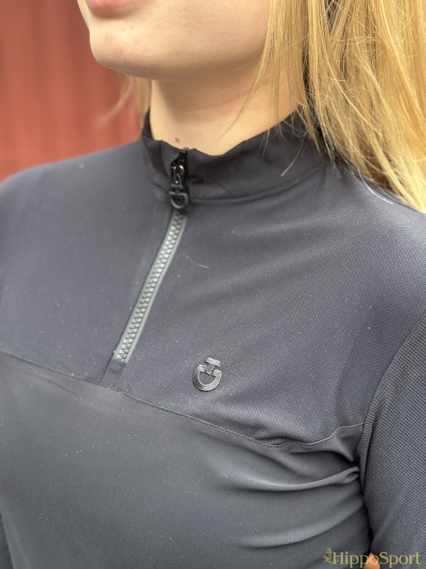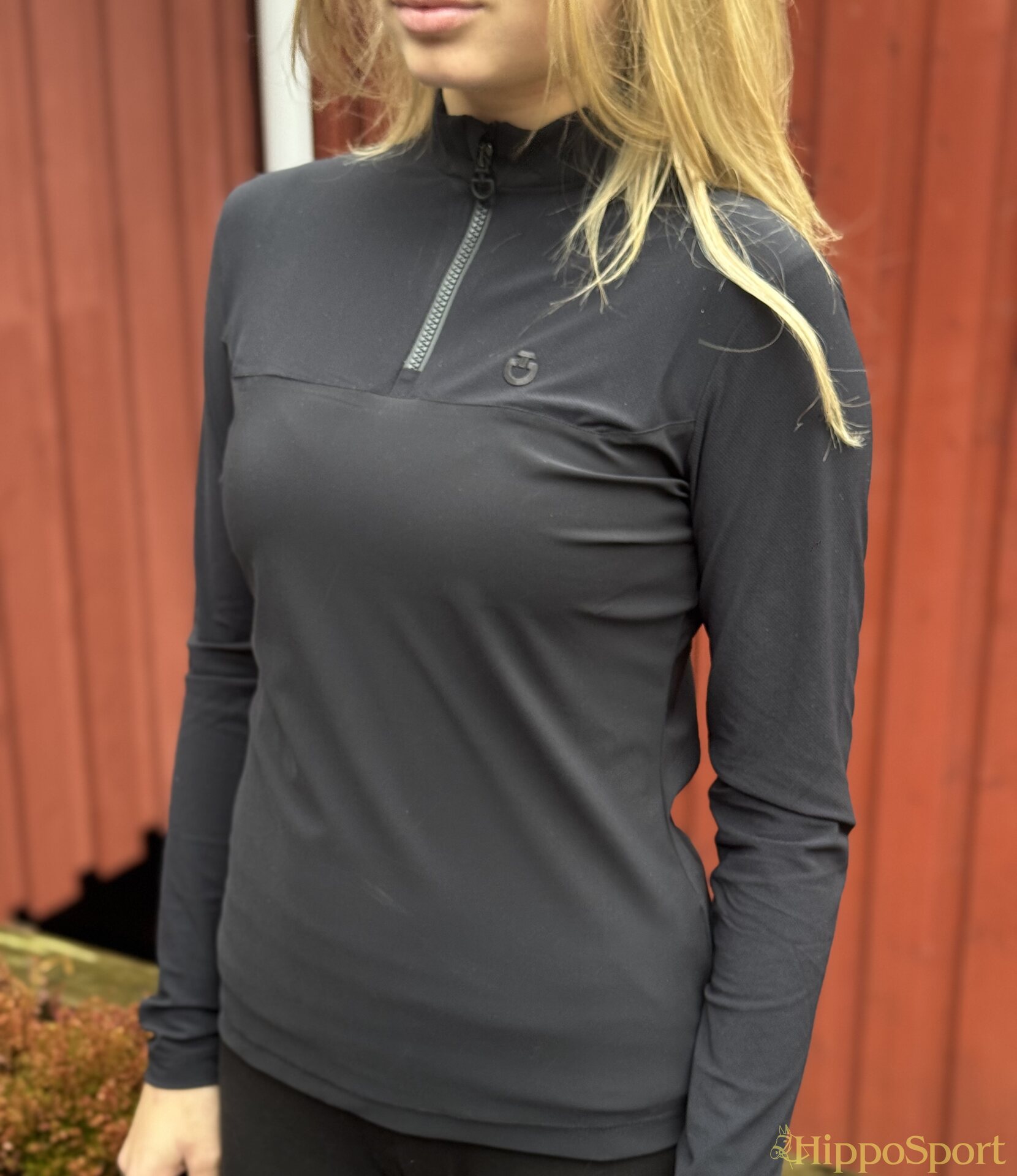 Cavalleria Toscanan tyylikäs tekninen treenipaita. Paidan hihat ja yläosa erittäin hengittävää mesh kangasta. Erinomainen valinta kovaankin treeniin. Näppärä puolivetoketju ja vetoketjussa tyylikäs logoyksityiskohta.