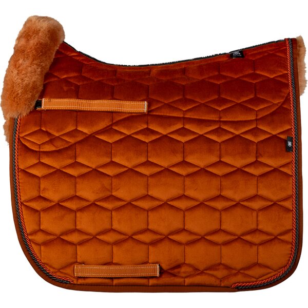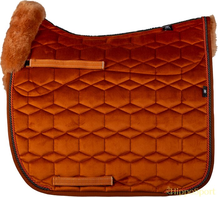 Mattesin syksyn 2025 malliston upeat satulahuovat yleellisellä samettipinnalla! Mattes satulahuopa, jossa lampaankarva hevosta vasten sekä etutrimmissä. Erinomainen vaihtoehto esim. herkkäihoisille hevosille. Huopaa kiertää sen väreihin sointuva.