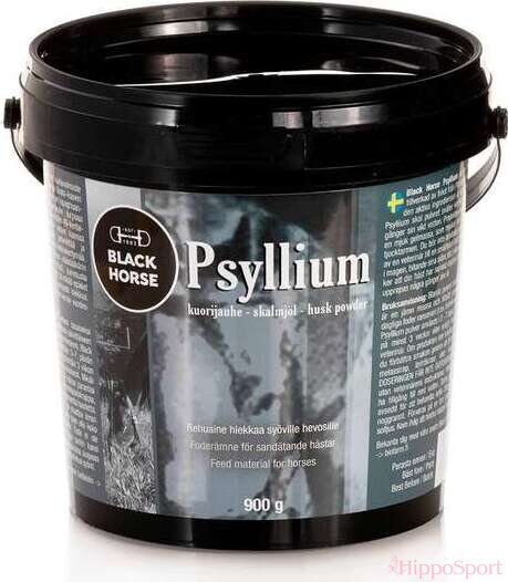 Black Horse Psyllium kuorijauhe rehuaine on tarkoitettu hiekkaa syöville hevosille. Black Horse Psyllium-kuorijauhe on kasvisperäinen kuituvalmiste, vaikuttava aine on ispaghulansiemenkuori, joka koostuu Plantago Ovata- kasvin siemenestä. Black Horse Psyllium- kuorijauhe turpoaa erittäin voimakkaasti, se sitoo 40-kertaisesti painoonsa nähden vettä.