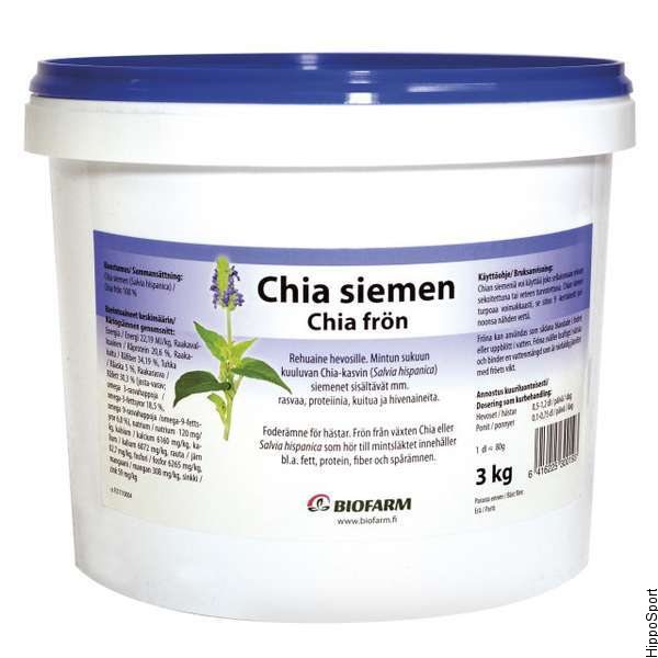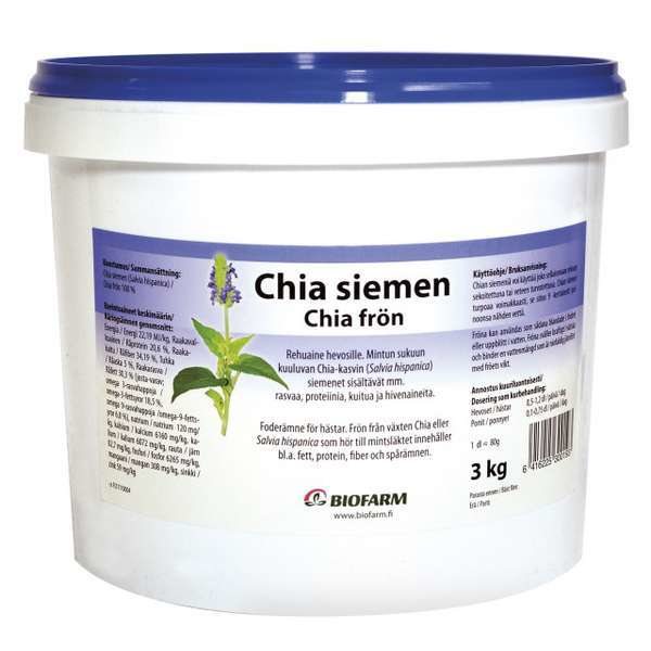 Chian siemeniä voi käyttää joko sellaisenaan rehuun sekoitettuna tai veteen turvotettuna. Chian siemen turpoaa voimakkaasti, se sitoo 9 kertaisesti painoonsa nähden vettä.