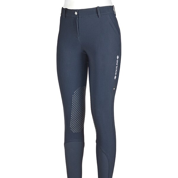 Laadukkaat Equiline fullgrip ratsastushousut miellyttävää, teknistä B-move kangasta. Reidessä Equiline logo.
