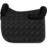 Mattes satulahuopa, jossa lampaankarva hevosta vasten sekä etu- ja takatrimmissä. Erinomainen vaihtoehto esim. herkkäihoisille hevosille. Pinta tyylikästä samettia. Huopaa kiertää sen väriin sointuva koristenyöri.