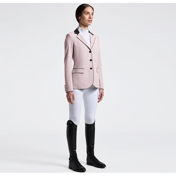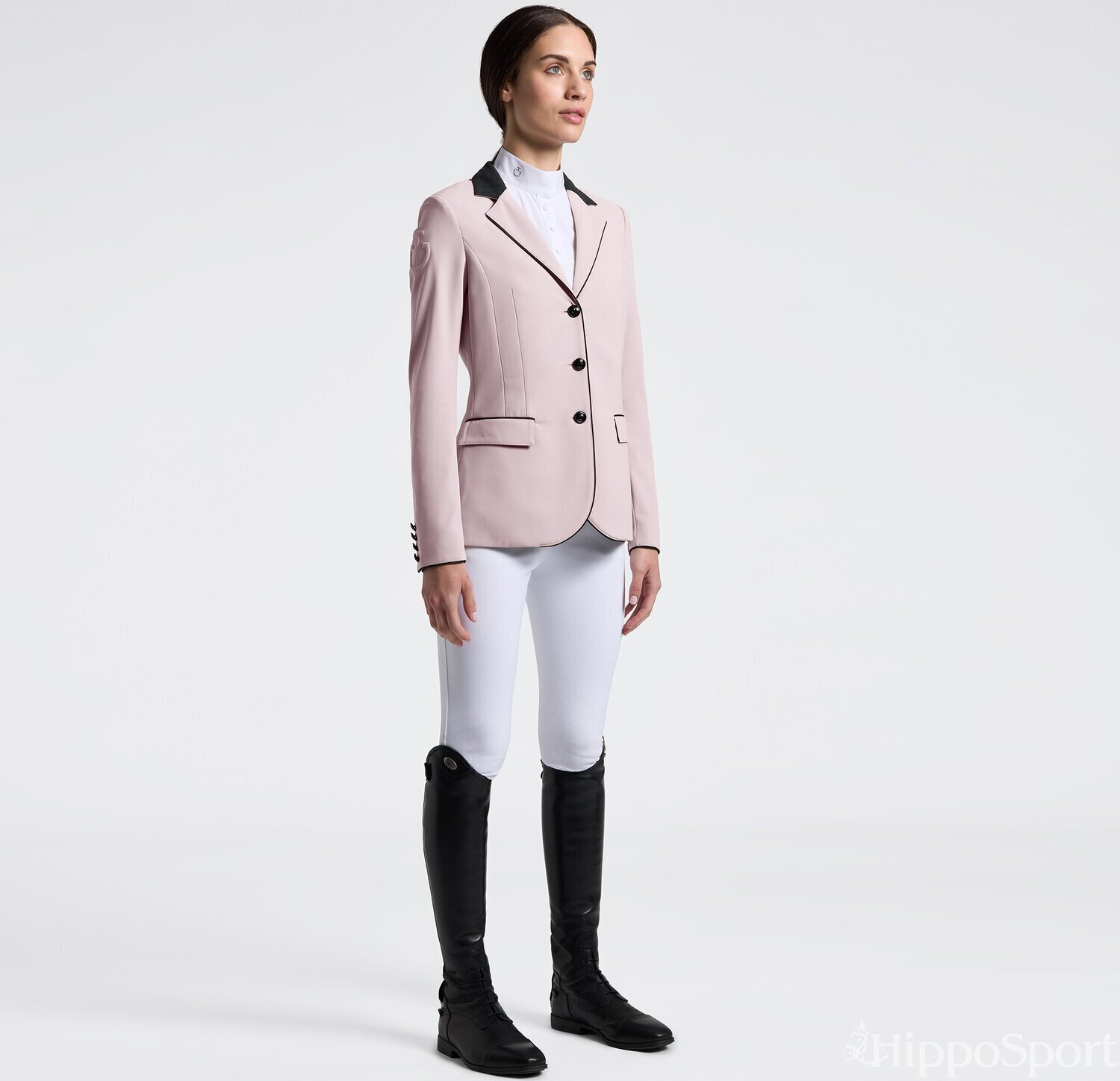 Cavalleria Toscana naisten GP huippulaadukas kisatakki on suunniteltu ratsastajille, jotka arvostavat eleganssia ja suorituskykyä kilpailuissa. Kestävä ja mukautuva tekninen kangas takaa sekä tyylin että toiminnallisuuden täydellisen yhdistelmän. Takissa on hienostunut musta alcantara-kaulus sekä mustat satiiniyksityiskohdat vetskareissa ja taskuissa, mikä luo erottuvan ja tyylikkään ilmeen. Mustat napit tuovat ripauksen klassisuutta, ja vasemmassa hihassa oleva kohokuvioitu CT-logo korostaa huolellisuutta ja sitoutumista laatuun.