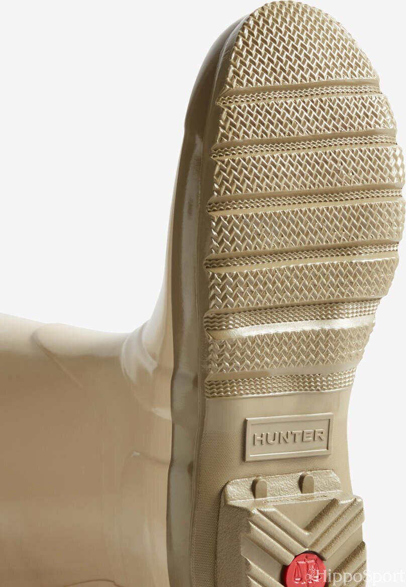 Täydellinen valinta sateisiin sääolosuhteisiin – tämä naisten Wellington-saapas on ollut Hunter Original -malliston ytimessä aina vuodesta 1956 lähtien. Luonnonkumista valmistettu saapas koostuu 28 käsin leikatusta osasta, jotka kootaan kolmen päivän aikana alumiinilestille, joka on suunniteltu erityisesti Hunterille. Lopuksi saapas vulkanoidaan parhaan mahdollisen suojan takaamiseksi. Klassinen kiiltävä suklaanruskea kumisaapas on varustettu Hunterin alkuperäisellä pohjakuvioinnilla ja miellyttävällä polyesterivuorilla – ehdoton valinta sadepäiville!
