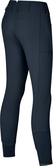 Nämä ratsastushousut tarjoavat erinomaista kompressiota ja samalla hengittävyyttä jonka ansiosta ne istuvat mukavasti koko ratsastuksen ajan. H-mallinen leikkaus tekee niistä ihanteelliset ratsastajille, joilla on kapeampi ylävartalo ja lanteet, tarjoten täydellisen istuvuuden ja suoraviivaisen siluetin. Kankaassa on innovatiivinen Tanatex®-käsittely, joka hylkii pölyä ja vettä jotta vaatteet pysyvät puhtaampina ja kestävämpinä kaikissa olosuhteissa. Tyylikäs KL-logo, jota koristavat Swarovski®-kristallit, lisää kokonaisuuteen hienostuneen ja elegantin viimeistelyn.