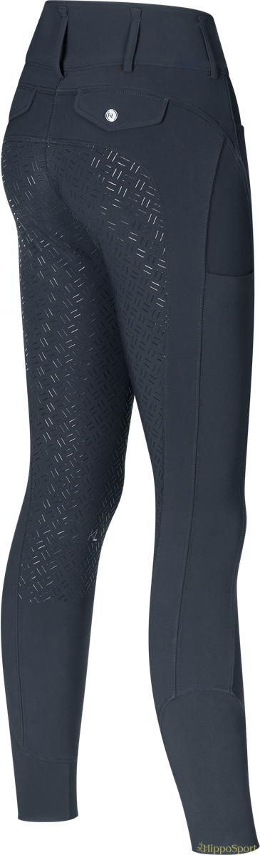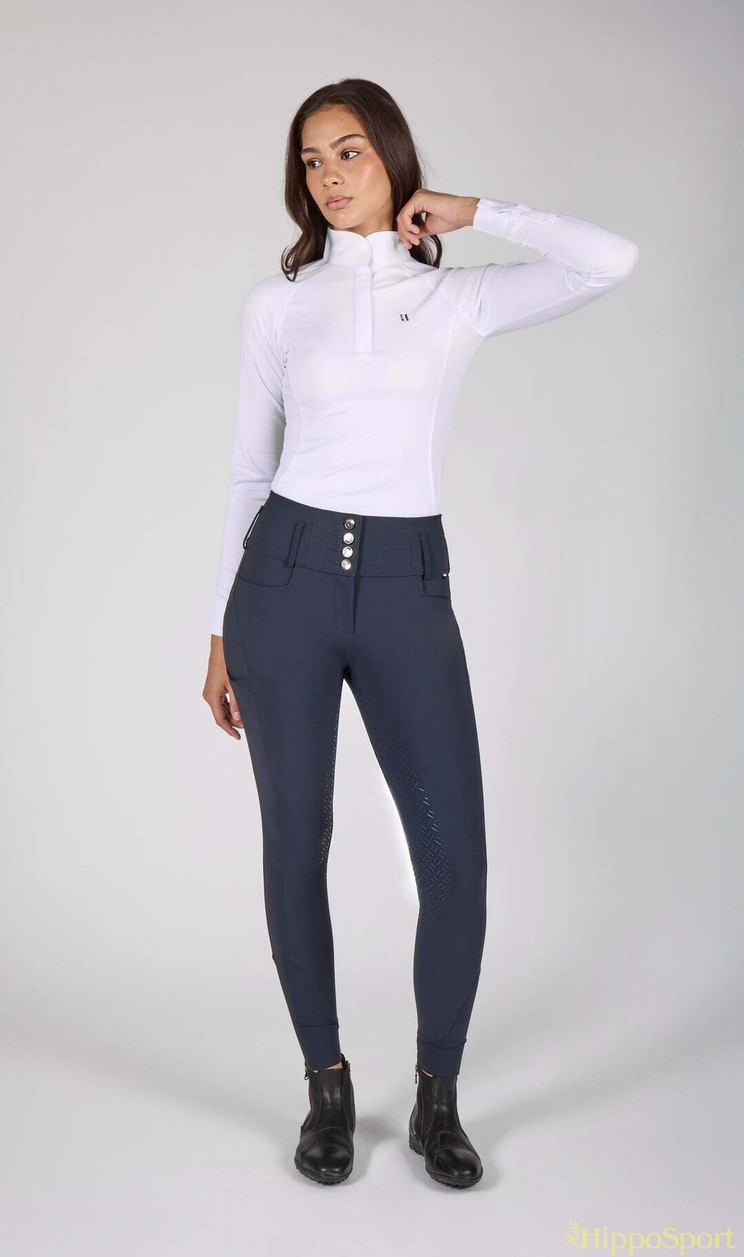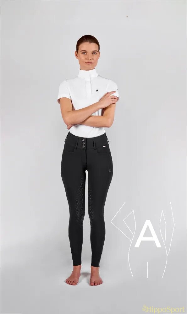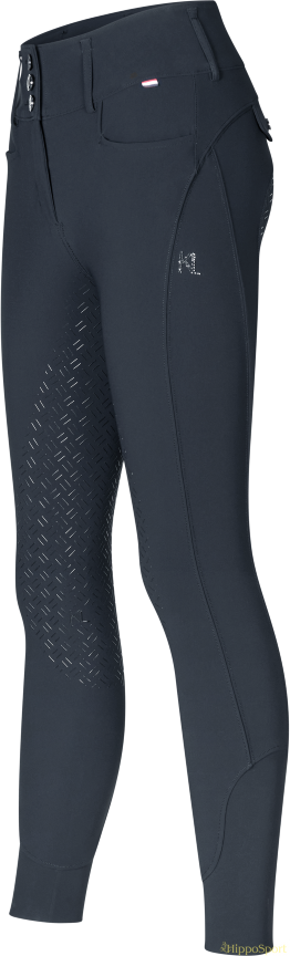 Näissä ratsastushousuissa on A-mallinen leikkaus, joka on suunniteltu ratsastajille joilla on kapeampi ylävartalo ja leveämmät lanteet – se luo imartelevan ja tasapainoisen siluetin. Vasenta lahjetta koristaa tyylikäs KL-logo Swarovski®-kristalleista.