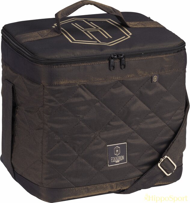 Tyylikäs ja käytännöllinen harjakassi ratsastajan kaikkiin tarpeisiin. Glam-pintamateriaali on näyttävä, ja kantokahva sekä säädettävä olkahihna tekevät laukusta monikäyttöisen. Sisäpuolen jaoteltu tila auttaa pitämään tavarat järjestyksessä, ja vetoketjusulku varmistaa turvallisen säilytyksen. Laukkua koristavat elegantti Heritage-logo ja printti sekä laadukkaat kullanväriset metalliosat.