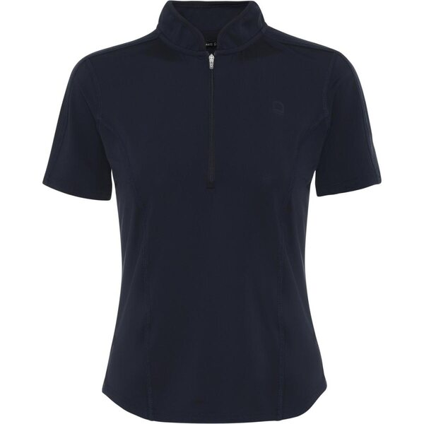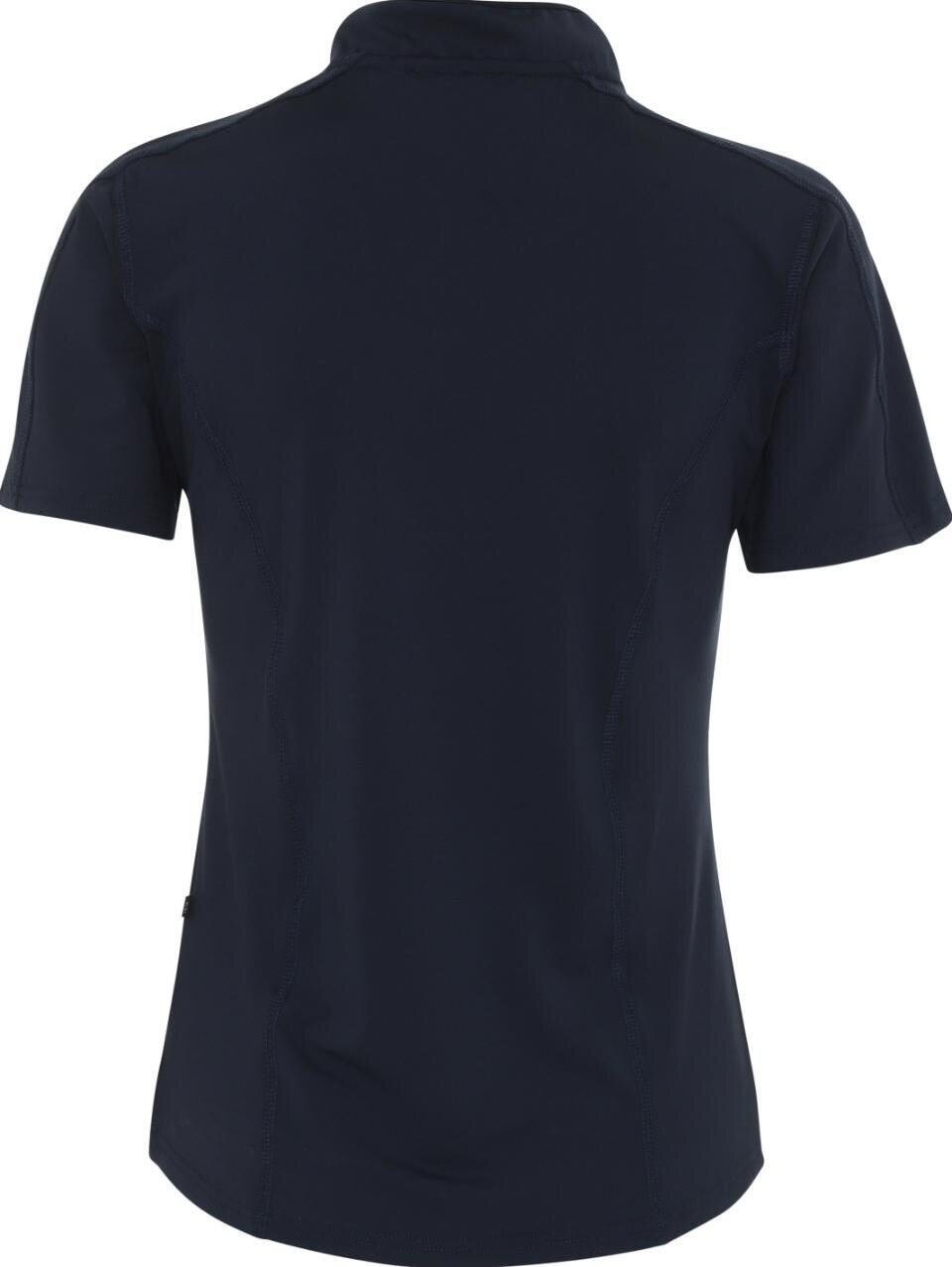 Lyhythihainen t-paita, jossa puolipitkä vetoketju ja tyylikkäästi pyöristetty kaulus. Hengittävä, kosteutta siirtävä ja miellyttävän viileä joustojersey tekee siitä täydellisen kevyen kerroksen kesään tai toimivan aluskerroksen talveen. Metallivetoketju viimeistelee ilmeen ja korostaa vartalon siluettia.
