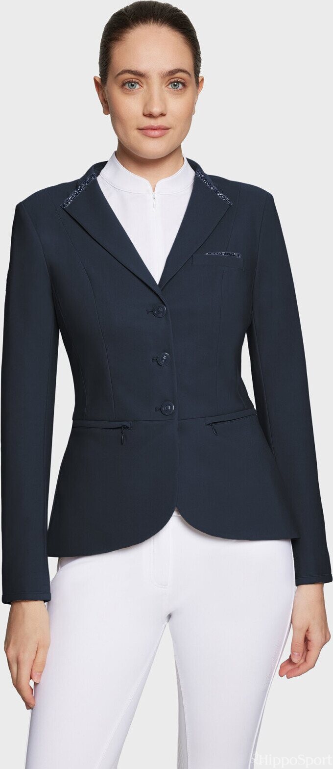 Samshield Victorine Premium kisatakki on tyylikäs ja tekninen naisten kilpailutakki, joka yhdistää hienostuneen ulkonäön ja korkean käyttömukavuuden ratsastuksessa. Takin ilmettä viimeistelevät elegantit Ultra fine rock swarovski-kristallikoristeet ja Samshieldin tunnus, jotka tuovat kokonaisuuteen hienovaraista ylellisyyttä ja näyttävyyttä kilpailukehässä. Huoliteltu design säilyttää silti klassisen ja ammattimaisen kilpailutyylin.