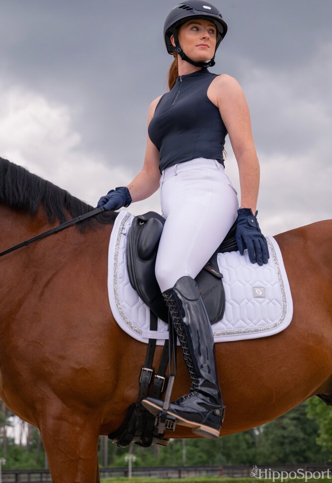 Eskadron kevään 2026 Classic Sports malliston Softshell Jewel -satulahuopa yhdistää näyttävän designin ja käytännölliset tekniset ominaisuudet. Huovan ulkopinta on kestävää ja tyylikästä softshell-materiaalia, kun taas sisäpuolen Cool-Dry-vuori siirtää tehokkaasti kosteutta ja auttaa pitämään hevosen selän kuivana sekä miellyttävänä ratsastuksen aikana.