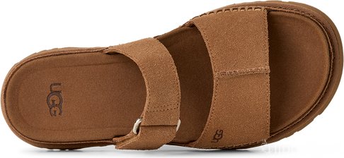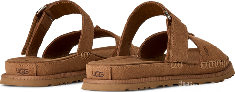Sama tuttu ja rakastettu UGG®-sandaalien mukavuus Goldenstar-mallistosta, nyt tyylikkäässä ja pelkistetyssä siluetissa. Matalaprofiilinen GoldenGaze slide -sandaali tuo asuun hienostunutta ilmettä ja sopii täydellisesti kesän menoihin aamusta iltaan. Säädettävä remmi auttaa löytämään juuri sopivan istuvuuden, ja laadukkaat yksityiskohdat tekevät tästä sandaalista todellisen suosikin – erittäin pehmeä mokkanahkapäällinen, pehmeä nahkavuori sekä sileä mikrokuituinen jalkapohja lisäävät käyttömukavuutta. Sokeriruokopohjainen EVA-ulkopohja tarjoaa pilvimäisen pehmeän askelluksen, joten tästä sandaalista tulee helposti kesän luottokenkäsi.