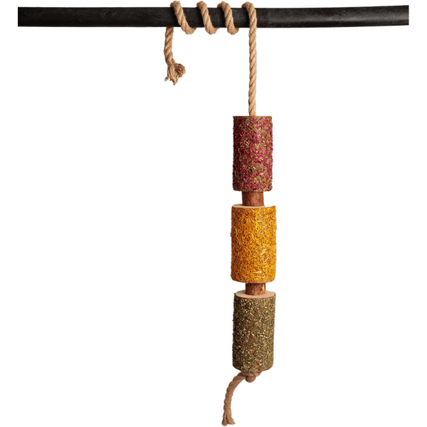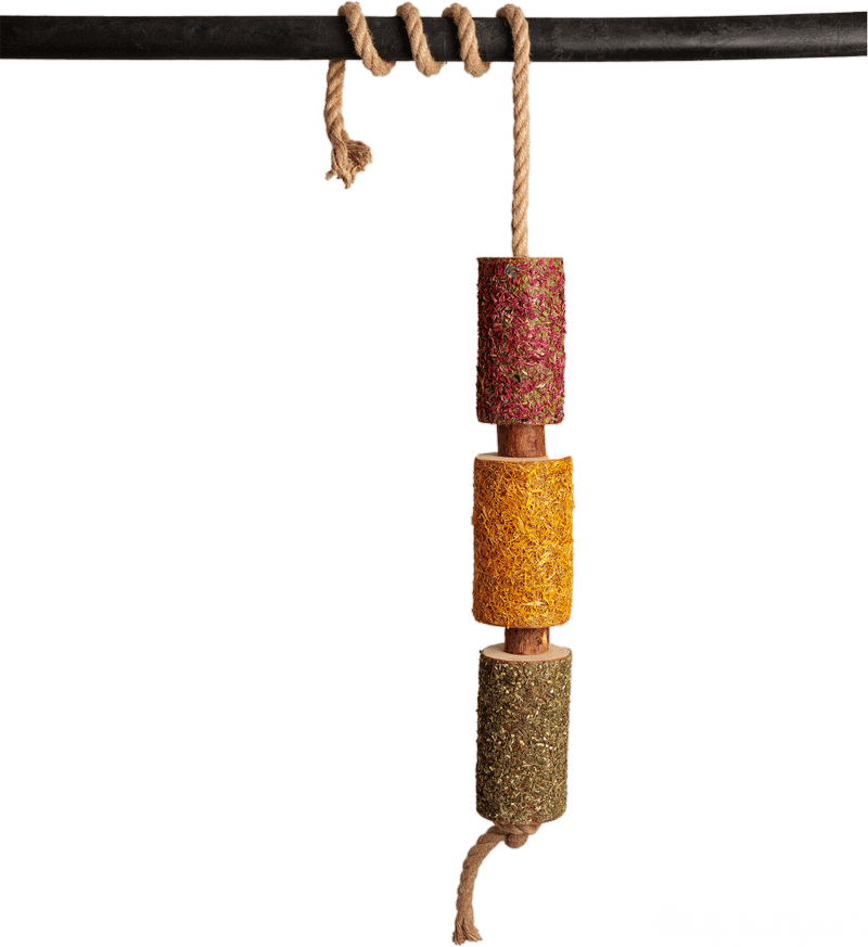 - Kun hevonen tutkii ja pureskelee lelua, luonnolliset tuoksut ja tekstuurit herättävät uteliaisuutta ja voivat edistää endorfiinien vapautumista. Siksi lelu sopii erityisen hyvin hevosille, jotka viettävät paljon aikaa karsinassa tai kaipaavat luonnon inspiroimaa virikettä.