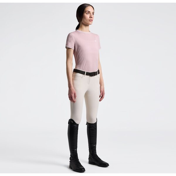 Cavalleria Toscana Stripe Jersey T-paita on tyylikäs ja monikäyttöinen naisten t‑paita, joka yhdistää elegantin designin ja teknisen suorituskyvyn. Valmistettu hengittävästä ja joustavasta teknisestä jersey‑materiaalista, se tarjoaa erinomaisen istuvuuden ja mukavuuden päivittäiseen käyttöön ja ratsastukseen. Materiaali siirtää kosteutta, kuivuu nopeasti ja tuntuu kevyeltä iholla – täydellinen valinta lämpimämpiin säihin tai aktiivisiin hetkiin.