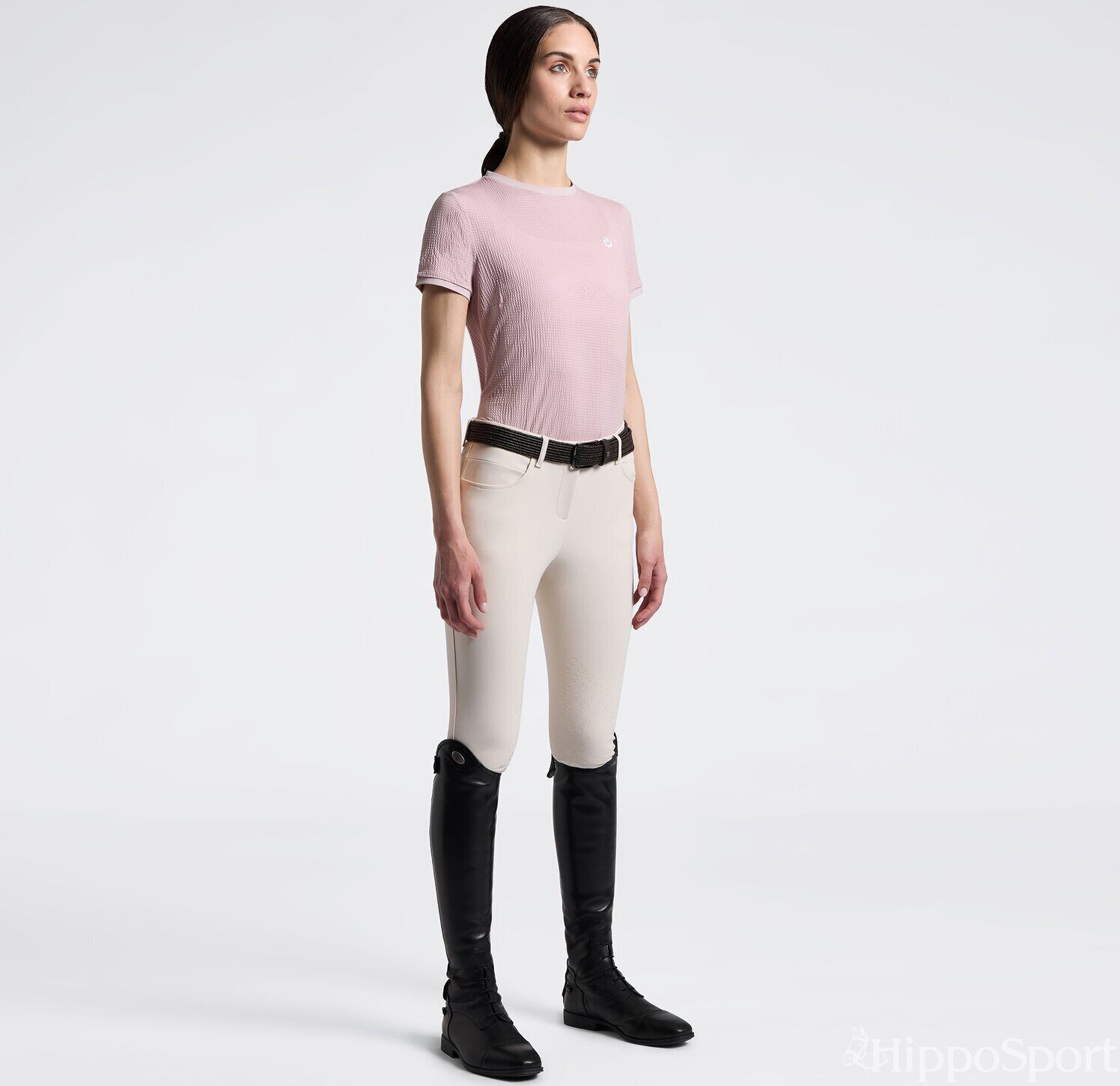 Paita on koristeltu hienovaraisilla raidoilla ja pienellä brändilogolla rinnassa, mikä luo hillityn mutta korkealaatuisen ulkonäön. Ergonominen leikkaus seuraa kehon liikkeitä tarjoten hyvän liikkumisvapauden ilman, että tyyli kärsii. Tuote on suunniteltu sopimaan sekä tallin arkeen että rentoon vapaa‑ajan käyttöön, ja se tuo ripauksen italialaista muotoilua vaatekaappiisi.