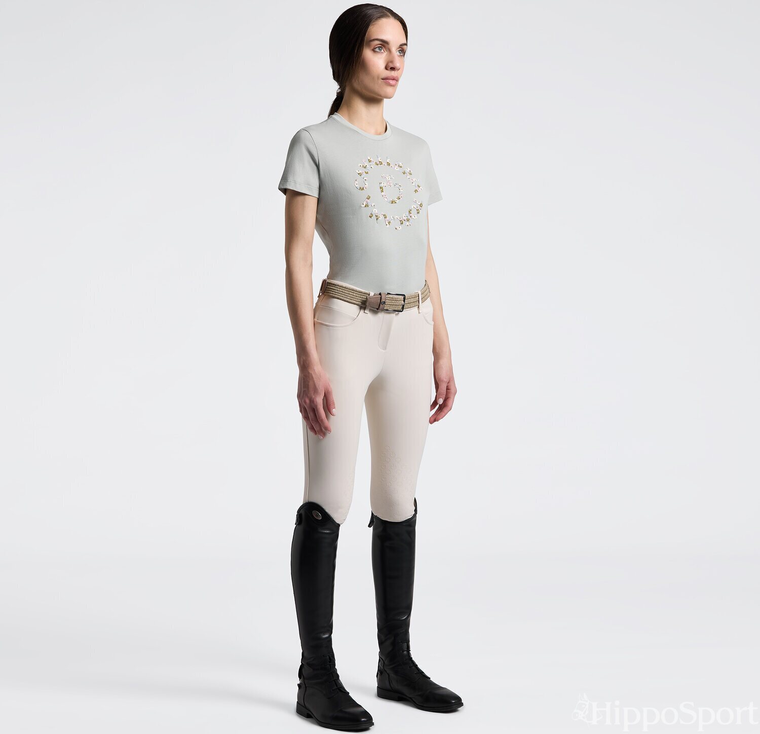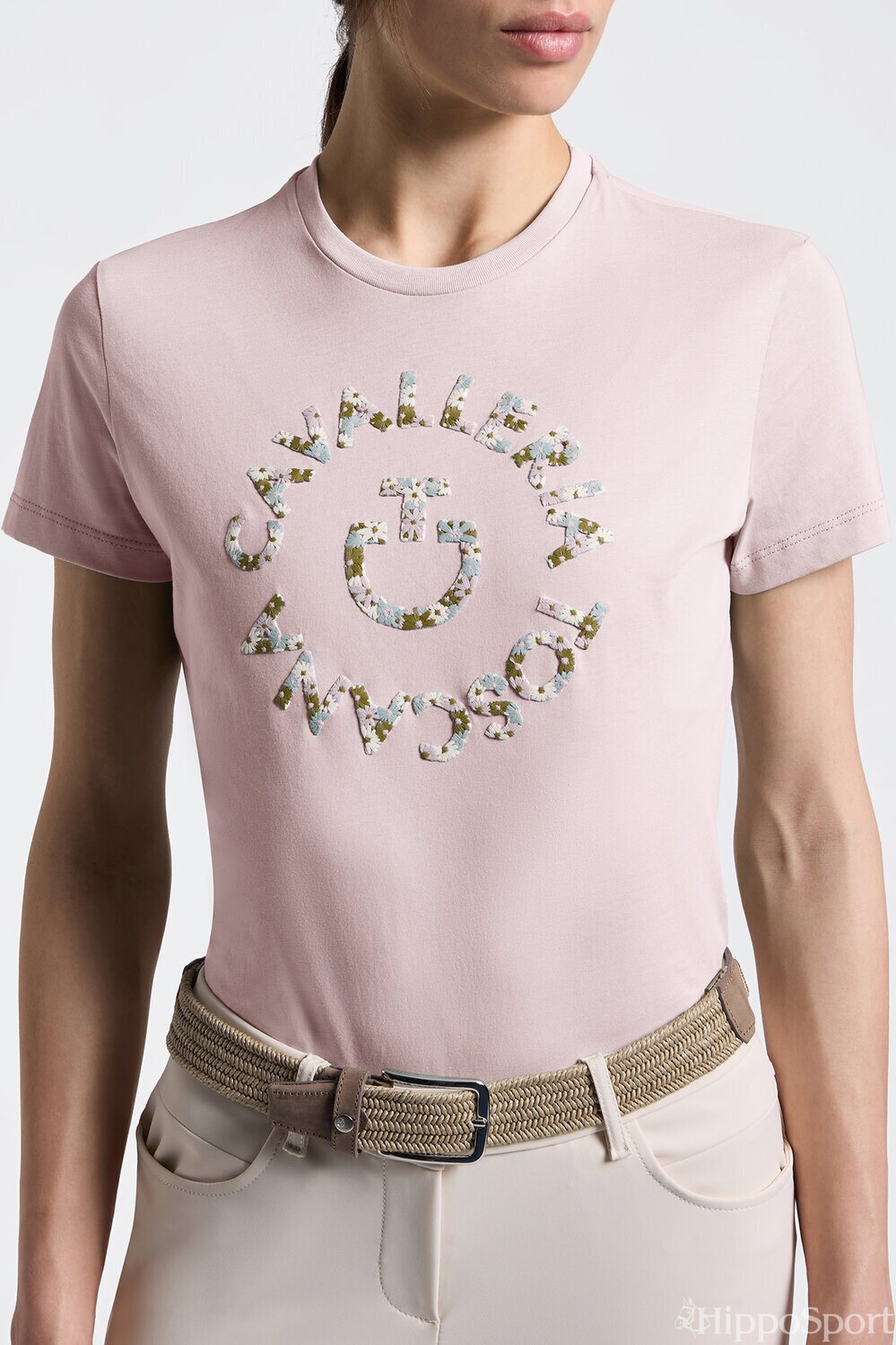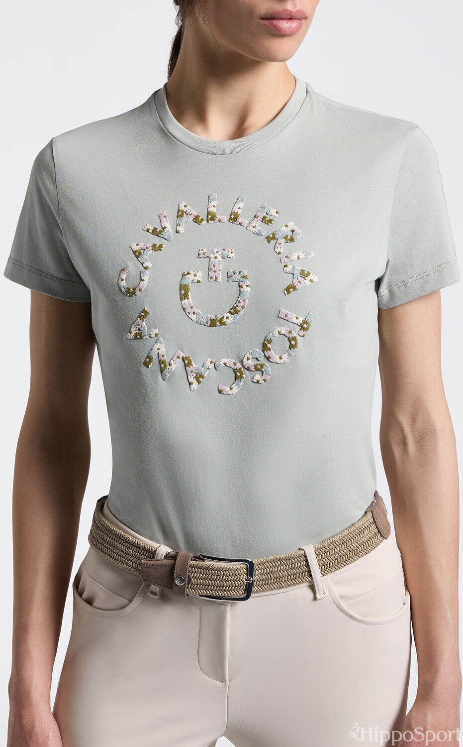 Cavalleria Toscana naisten t-paita kukkakirjailulla yhdistää ajattoman tyylin ja laadukkaan materiaalin hienostuneeksi kokonaisuudeksi. Pehmeästä, 100 % puuvillasta valmistettu kangas tuntuu miellyttävältä ihoa vasten ja tekee paidasta erinomaisen valinnan niin tallille kuin vapaa-aikaan.