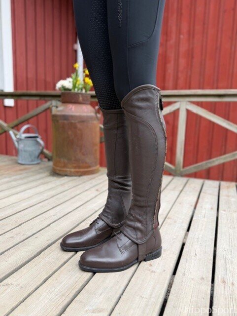 Nämä minichapsit ovat erinomainen valinta ratsastajalle, joka suosii ratsastuksessa kenkiä ja chapseja perinteisten saappaiden sijaan. Materiaali on helppohoitoista tekonahkaa, ja huolellinen viimeistely yhdistyy toimivaan rakenteeseen. Tuotteessa yhdistyvät hyvä käyttömukavuus ja kilpailukykyinen hinta-laatusuhde.