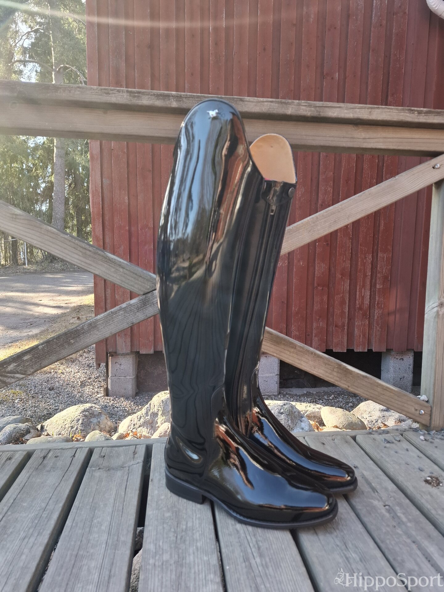 Saappaat on valmistettu käsin Italiassa laadukkaasta nahasta. Kestävä YKK vetoketju saappaan etuosassa. Saatavilla myös lakerisena tai puolikiiltävällä brushed nahalla.