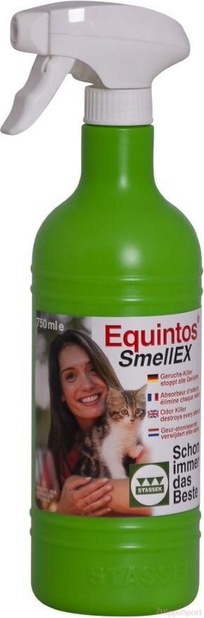 Equintos Smellex imee sekä poistaa hajut välittömästi ja lopullisesti. Sitä voidaan käyttää poistamaan ammoniakin, homeen, lannan ja oksennuksen hajut, kuin myös kotieläimien kuten jyrsijöiden ja kissojen sekä koirien hajuja. Tuotetta voidaan suihkuttaa kotiin olohuoneisiin, ullakoille ja kellariin, sekä autojen verhoiluun. Stassek Equintos Smellex poistaa myös tehokkaasti hajut ruokinta-astioista.