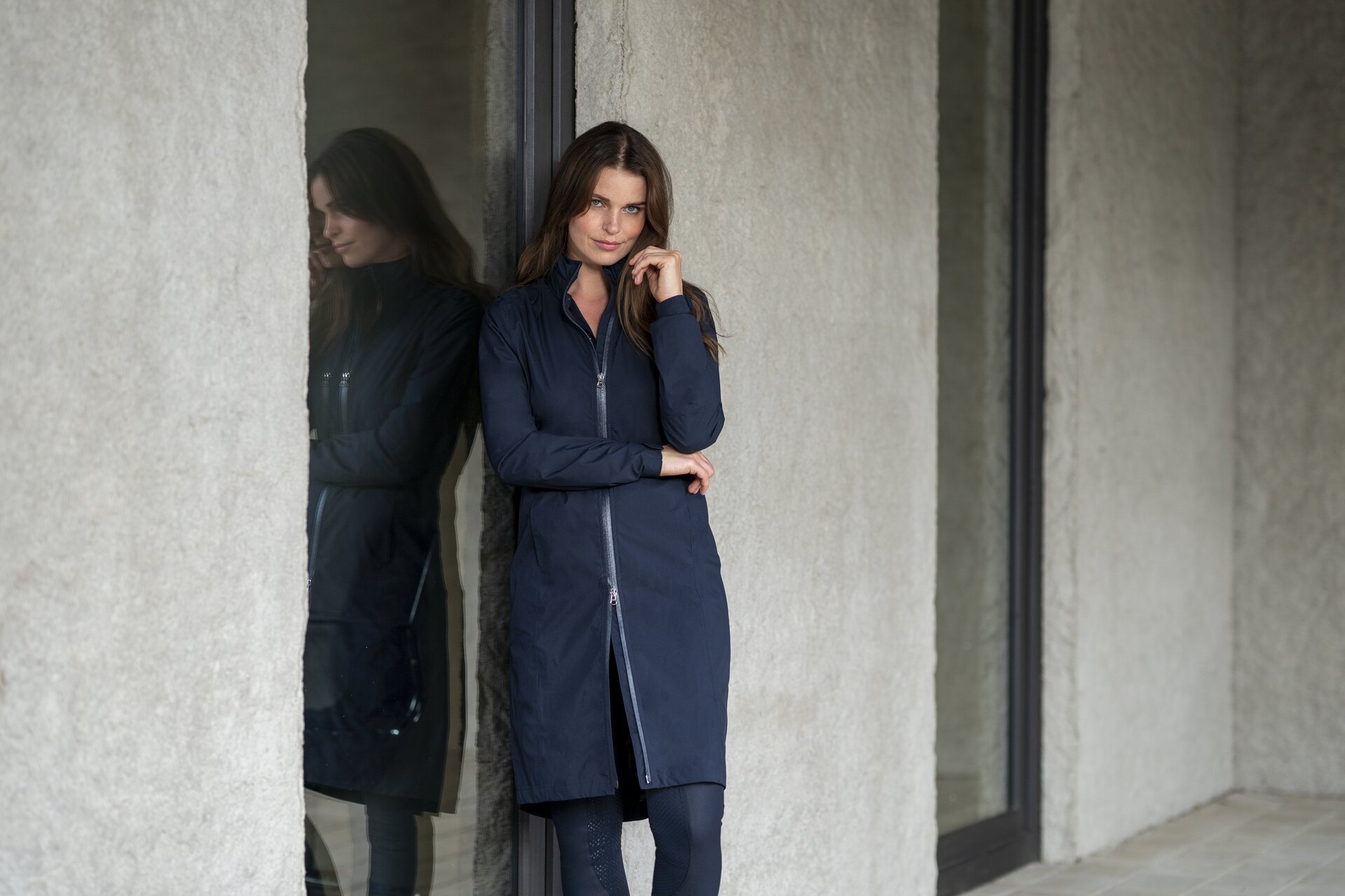 Euro-Star Sandi ohut parkatakki on vedenpitävä ja hengittävä. Takin saumat ovat kauttaaltaan teipatut, jolloin vesi ei pääse niiden kautta valumaan läpi. Hihojen ja olkapäiden leikkaus mahdollistaa maksimaalisen liikkuvuuden. Selkäpuolella on helmassa halkio, mikä mahdollistaa myös ratsastuksen. Takissa on kaksisuuntainen vetoketju, säädettävät tarrat hihansuissa ja joustavat jalkalenkit. Huppu on mahdollista piilottaa kauluksen sisään.