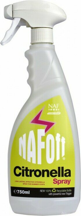 NAF Citronella spray suojaa hevosia hyönteisiltä! Pitkäkestoinen vaikutus. Uusi, 100% kierrätettävä pakkaus. Art.no 721138075