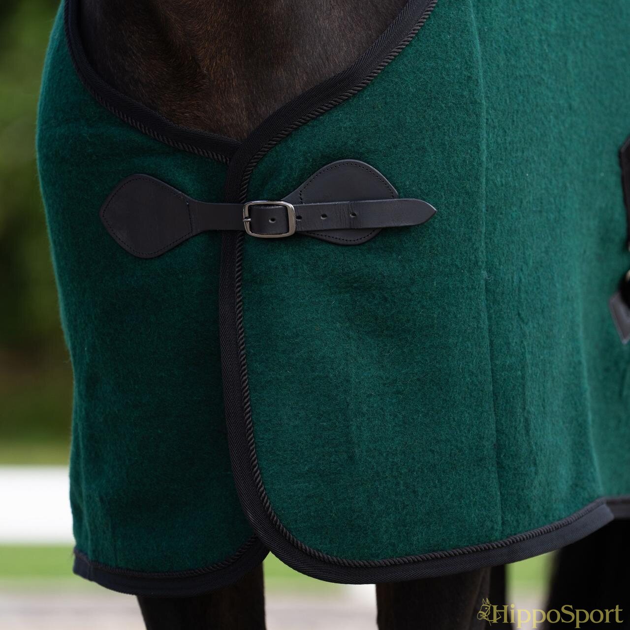 Tämä tyylikäs paksu villaloimi sopii täydellisesti sekä arkeen että kisoihin. Loimi on 80% villaa ja 20% viskoosia, joka tekee loimesta hyvin lämpimän, hengittävän sekä kosteutta pois iholta siirtävän. Loimessa on kaunis koristeköysi ja koristeellinen häntäremmi sekä yleelliset ja kestävät nahkakiinnitykset. Säkäosassa on hiertymiä estävä fleece-osa ja irroitettavat X-vatsavyöt tekevät loimesta monikäyttöisemmän.
