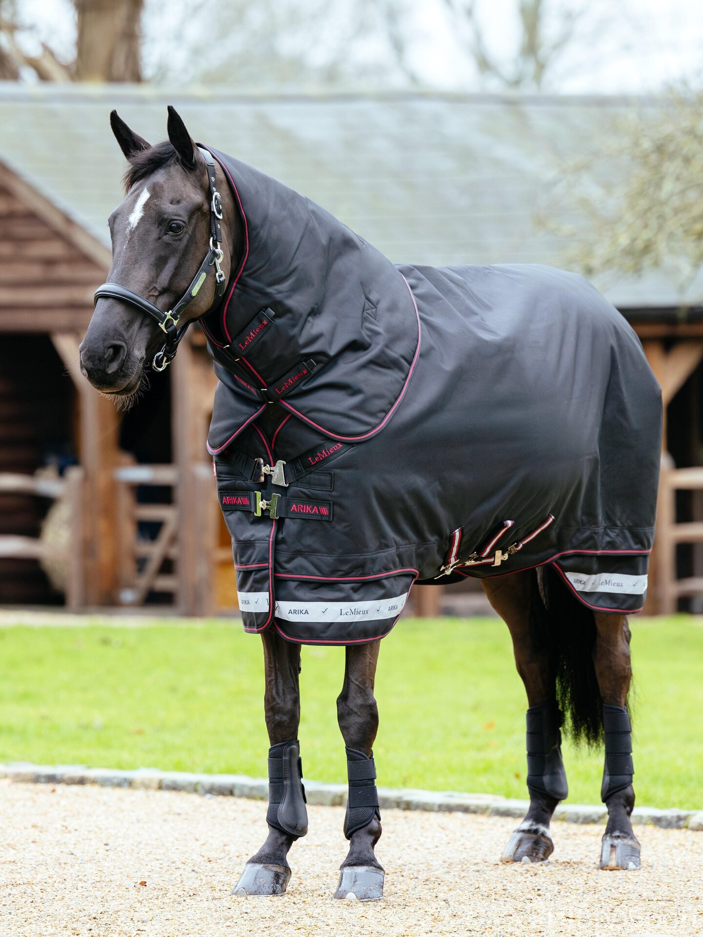 Lemieux Arika Storm-Tek ulkoloimi on kehitetty vallankumouksellisen, patentoidun kaksiosaisen järjestelmän avulla. Erillinen alempi helmaosa muodostaa katkoksen helmalinjaan, mikä vähentää kireyttä ja mahdollistaa laajemman liikkumisvapauden. Keskipaneeli auttaa loimea asettumaan oikein ja tarjoaa lisäsuojaa. Loimen viisto etukiinnitysjärjestelmä sisältää ainutlaatuisen, rekisteröidyn solkirakenteen, joka tasapainottaa ja jakaa paineen tasaisesti, auttaen ehkäisemään hankausta lavan kohdalta ja rinnan alueelta.