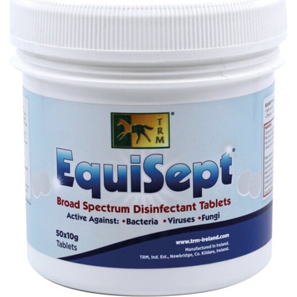 TRM Equisept on tehokas ja helppokäyttöinen desinfiointiaine tallin ja kuljetustilojen pinnoille! Se auttaa pitämään talliympäristön puhtaana ja hygieenisenä sekä vähentämään bakteerien, virusten ja sienien leviämistä. Tabletit liukenevat veteen ja muodostavat desinfiointiliuoksen, joka soveltuu kovien pintojen puhdistukseen talleissa, karsinoissa ja kuljetustiloissa.