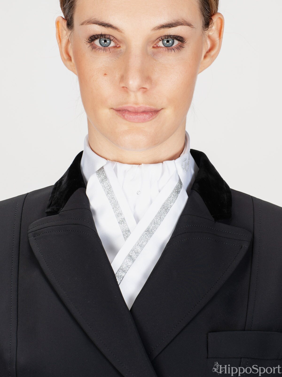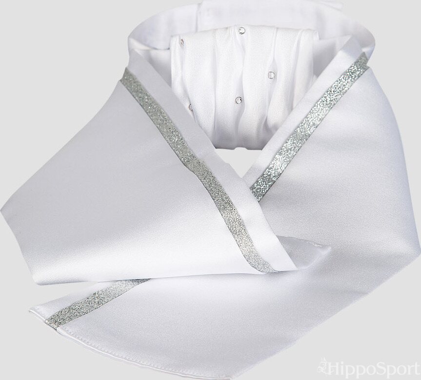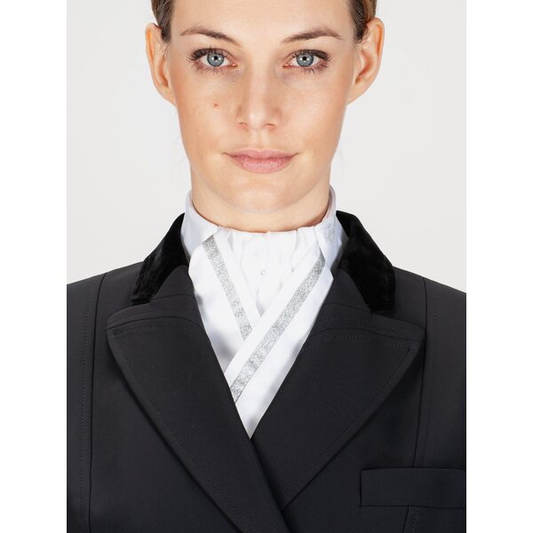 Equiline CLOE-plastron hopeanvärisellä nauhalla on tyylikäs ja huoliteltu lisä ratsastusasuun. Kaulusta koristavat säihkyvät strassit tuovat hienostunutta näyttävyyttä ja viimeistelevät kokonaisuuden kilpailuihin tai edustaviin tilanteisiin. Hopeinen nauha korostaa klassista ilmettä ja lisää modernia eleganssia.